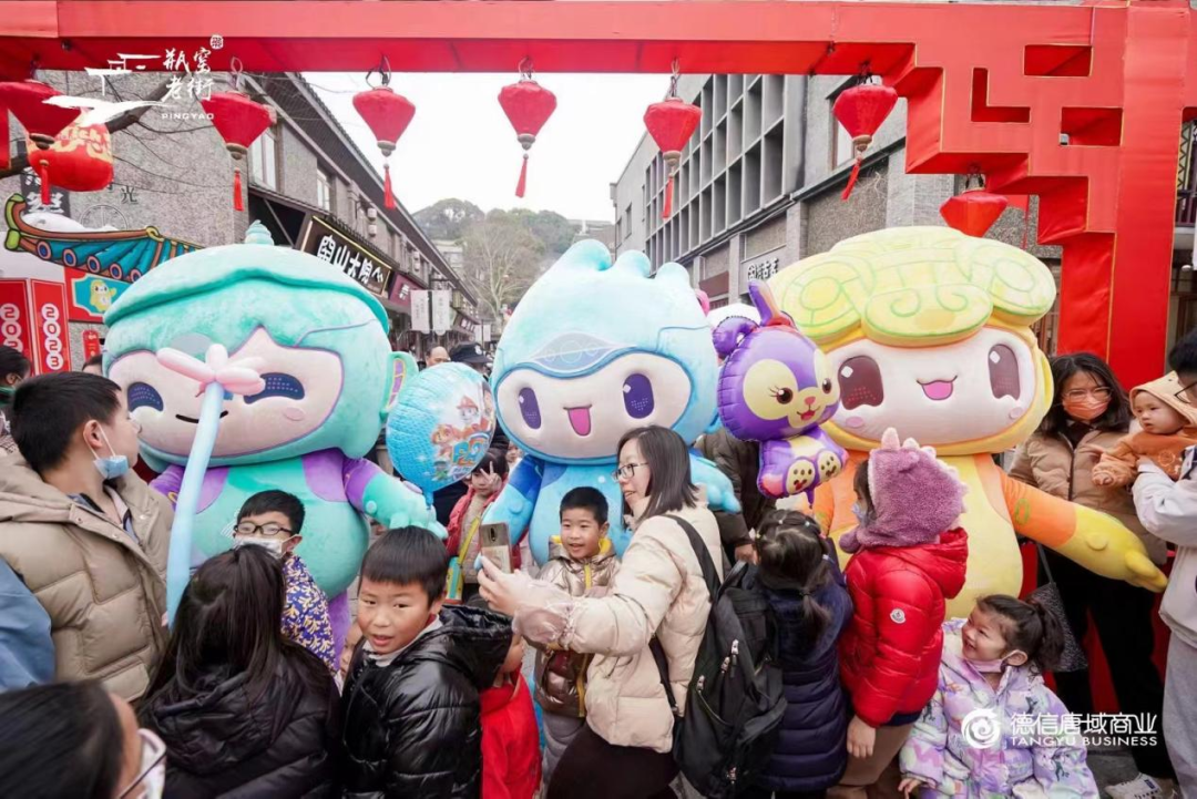 唐域商业因地制宜打造多样化的消费参与活动,推出力度大、花样多的促销活动,同时在场景创意、氛围营造、互动体验等方面开动脑筋,汇聚人气点燃烟火气,实现日均客流量超10万人次,协同实体商家点燃春节经济, 再掀消费高潮。