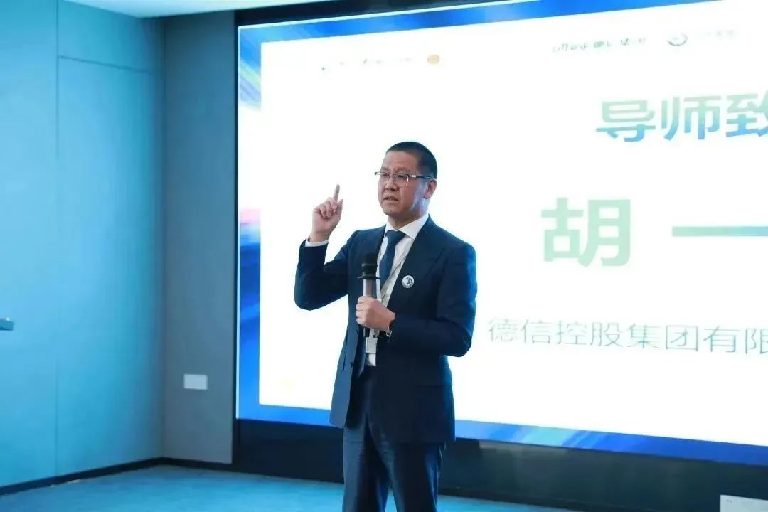 导师发言环节,德信集团董事长胡一平对各位学员的到来表示热烈欢迎,同时高度肯定了强鹰计划对于培养青年力量、输送青年人才的社会贡献。