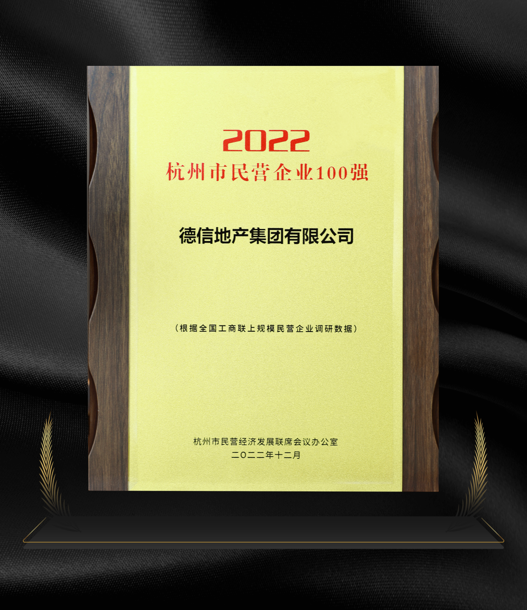 喜讯!德信地产集团入选“2022杭州市民营企业百强榜单”