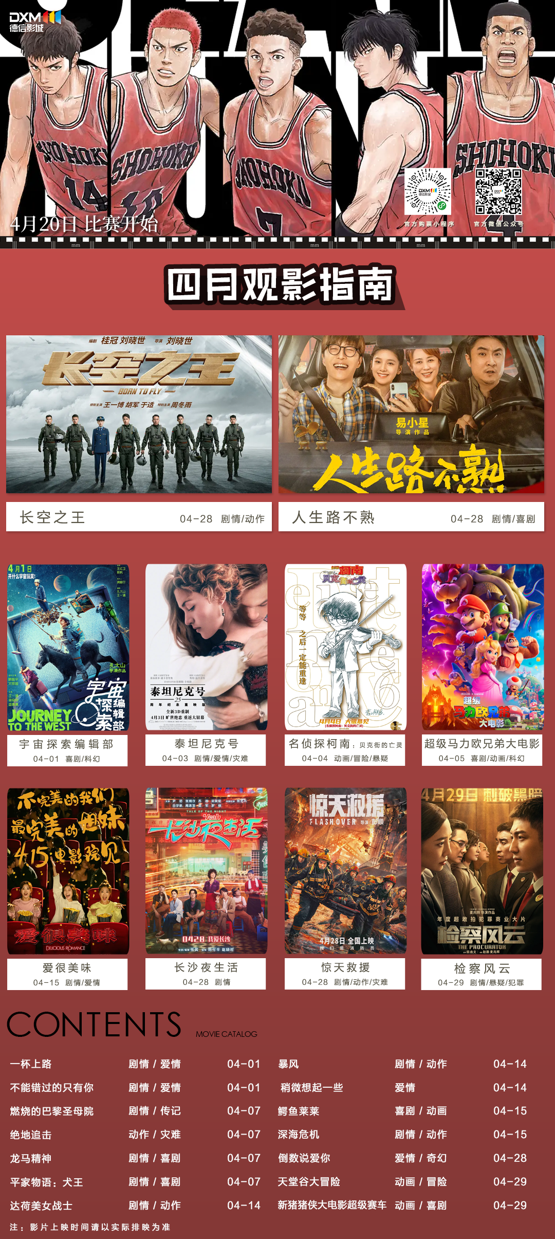 四月影讯来袭,巨星云集,好片扎堆!动作、喜剧、爱情、冒险等多种类型影片供你选择,寻找外星人《宇宙探索编辑部》、3D重制《泰坦尼克号》、童年回忆杀《超级马力欧兄弟大电影》、笑和泪的疯狂旅行《人生路不熟》、热血救援大片《惊天救援》.......这个周末,快来德信影城观影吧!
